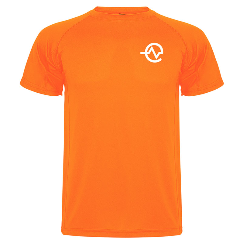 Camiseta técnica de manga corta con cuello redondo. Tejido transpirable de fácil lavado y secado.